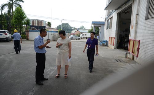 鎮長讓一部分人到工廠到處看看,他們在我們工作人員的帶領下,參觀了我們的生產流程,討論交流了一些生產工作的細節。我們把生產中我們所做的安全事項給他們一個個娓娓道來,表明我們一直很重視安全問題。任何人進入車間都必須佩帶安全帽,如果沒有佩帶則算是違規,要予以處罰。