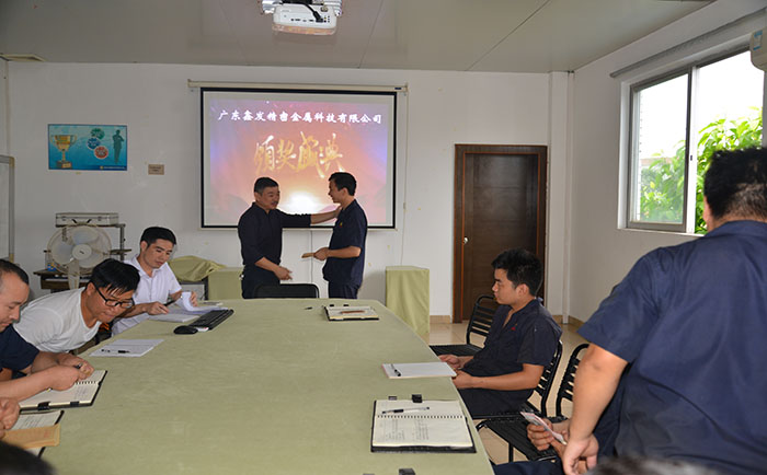 為肯定九月份全體生產人員的付出與努力,進一步提高員工的積極性,激發生產車間潛在力,爭創產量新高峰!10月19日下午,在鑫發三樓會議室舉行了“鑫發頒獎盛典”,獎勵九月份全體生產員工為突破產量貢獻的汗水與辛勞。