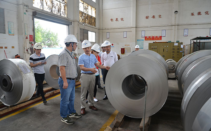 2016年11月8日,富士康科技集團(tuán)采購部詹部長一行來我廠進(jìn)行參觀指導(dǎo)工作。詳細(xì)了解了我們公司的生產(chǎn)現(xiàn)狀和未來規(guī)劃,辛總和相關(guān)的技術(shù)人員陪同詹部長等人到生產(chǎn)車間了解我們的鋼帶原材,參觀了我們的4輥軋機(jī),20輥軋機(jī)、拉矯機(jī)的生產(chǎn)過程。