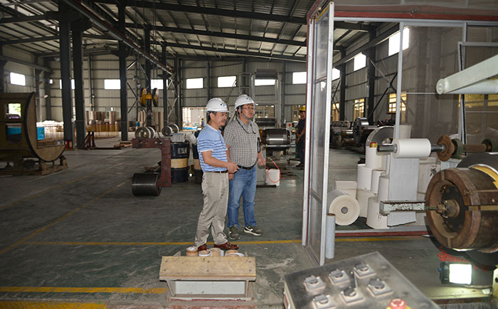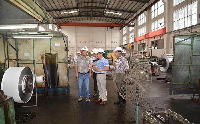 圖三:富士康部長參觀拉矯機(jī)生產(chǎn)過程